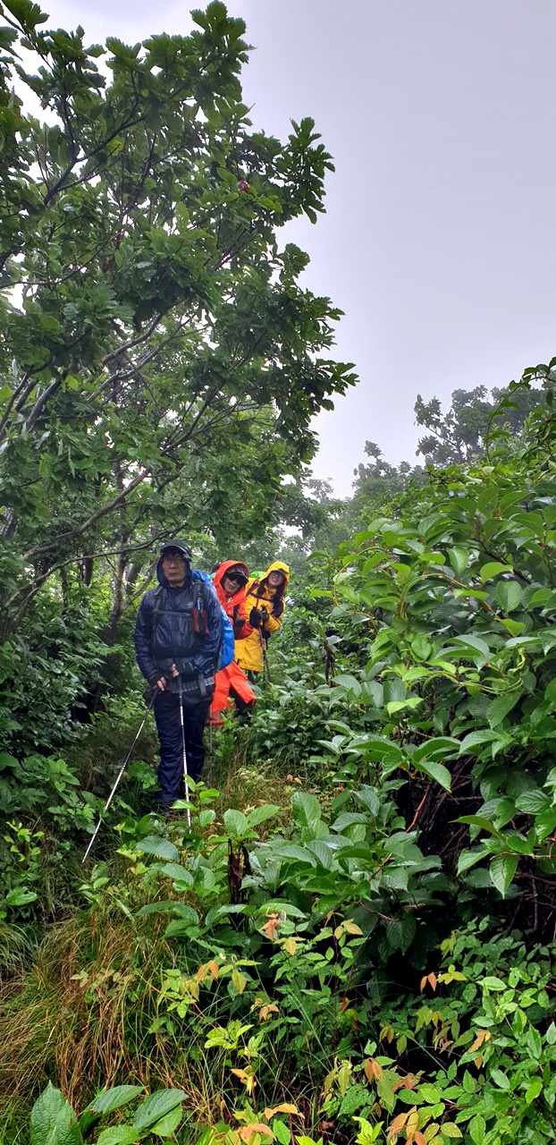 비는 쉬지 않고 내리고, 좌우 아무 조망 조차 없는 산길이지만 처음 걸어 본다는 것 만으로 만족스러웠다.