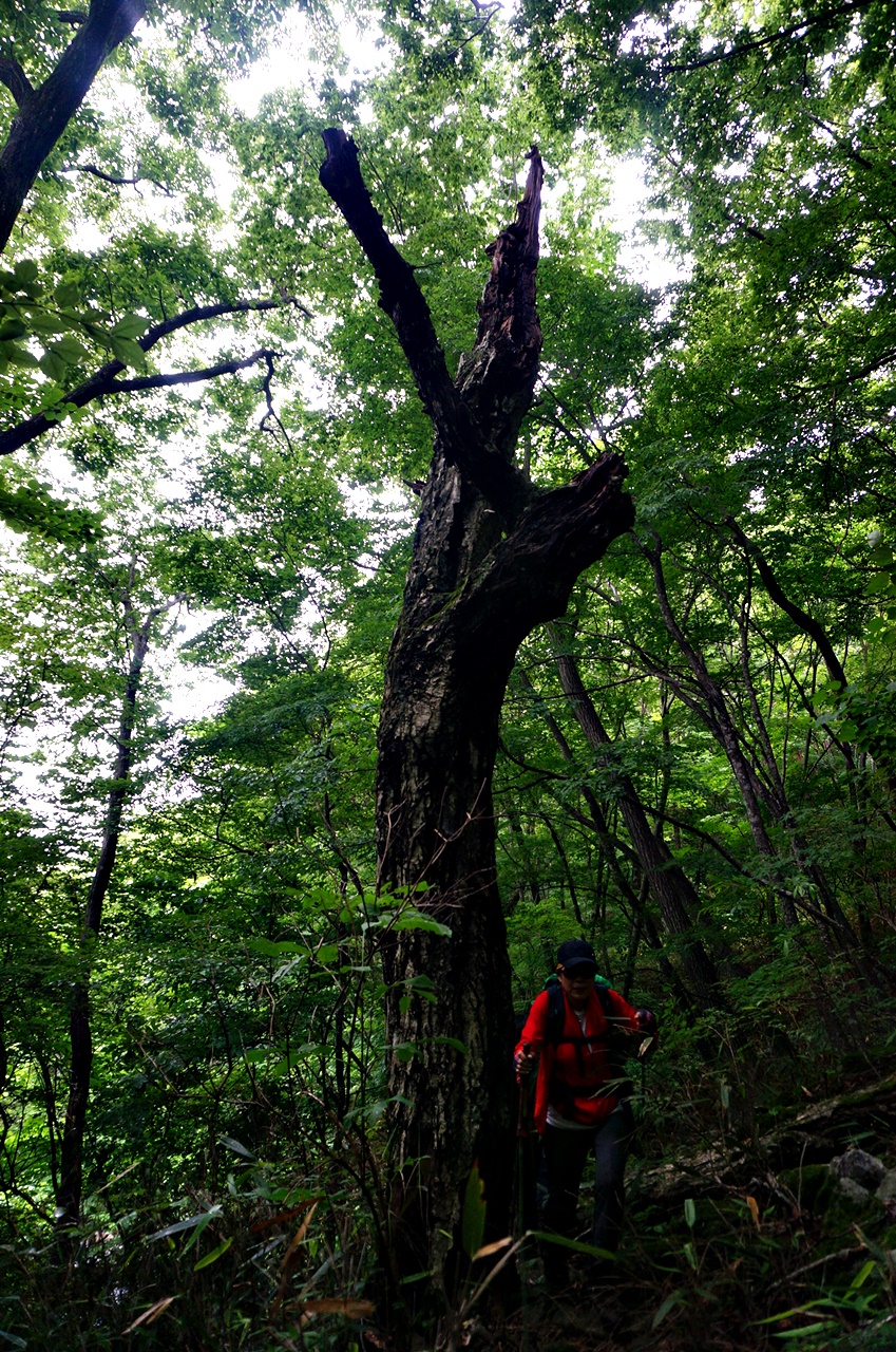한벗 샘을 약간 지나 능선을 따라 걷든 길에서 좌측 단천 지능으로 접어들었다.