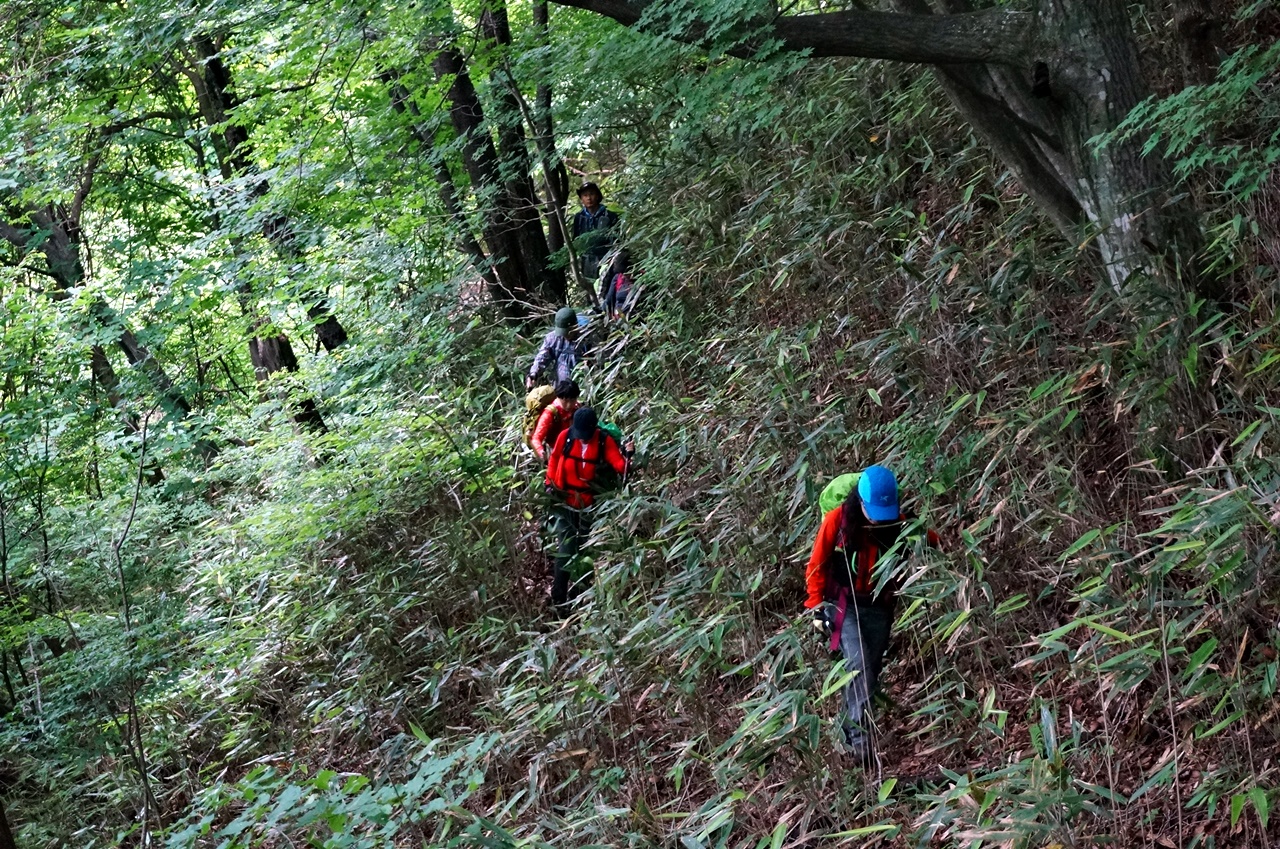 계곡을 벗어난 길은 사면을 따라 산죽과 너들을 통과해야 했다.