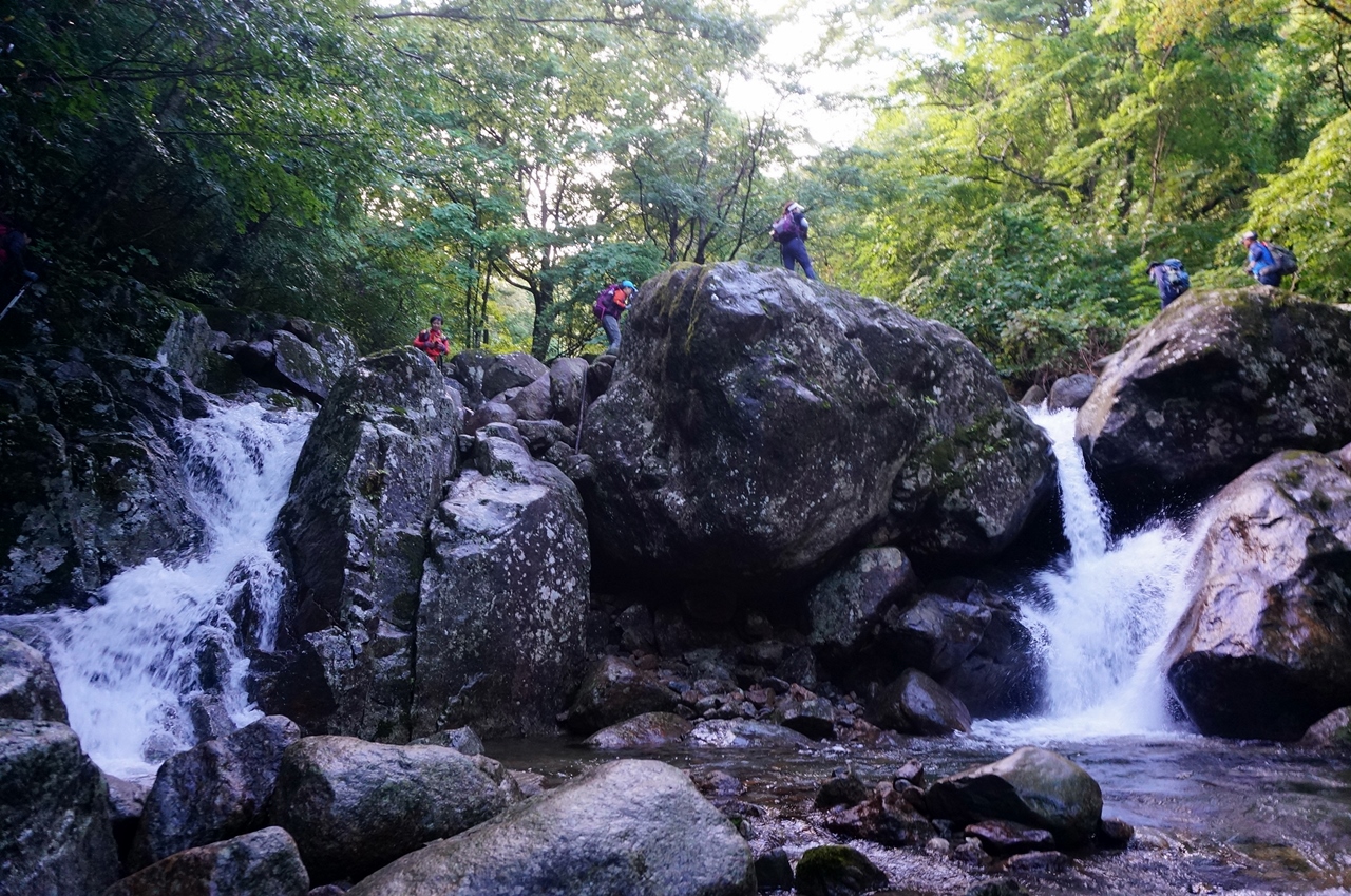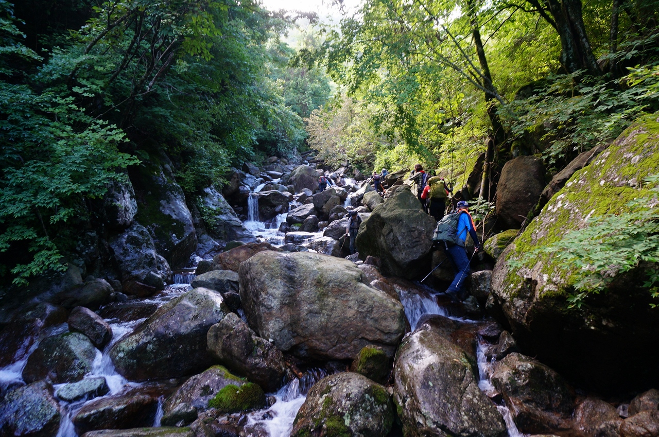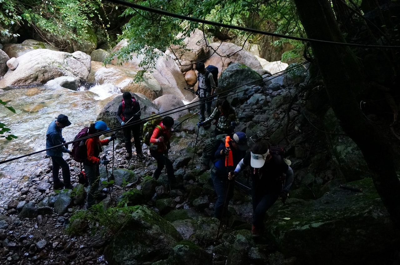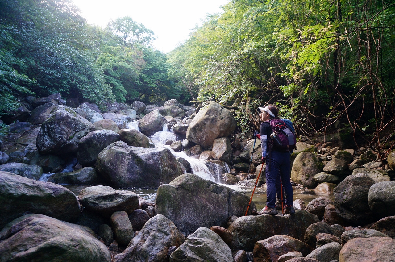 좌측 골은 오르는 동안 폭포가 연달아 나타나는데, 지리산 깊은 계곡의 비경에 감탄을 금하지 못할 만큼 그 풍경이 압도적이었다.