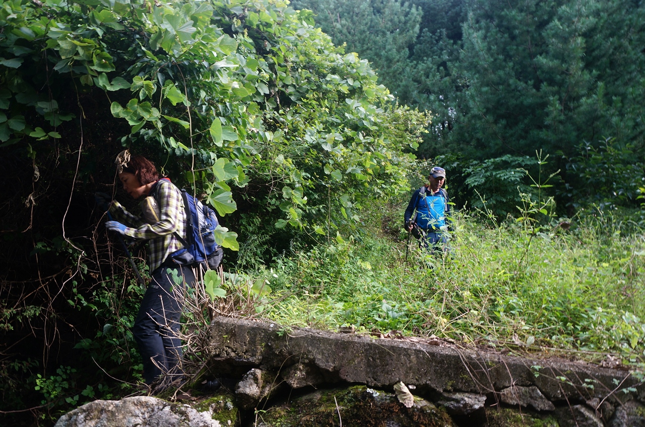 마지막 임도로 내려서는 곳은 잡풀이 무성하여 조금 헤치며 나왔지만 길은 온전히 살아 있었다.