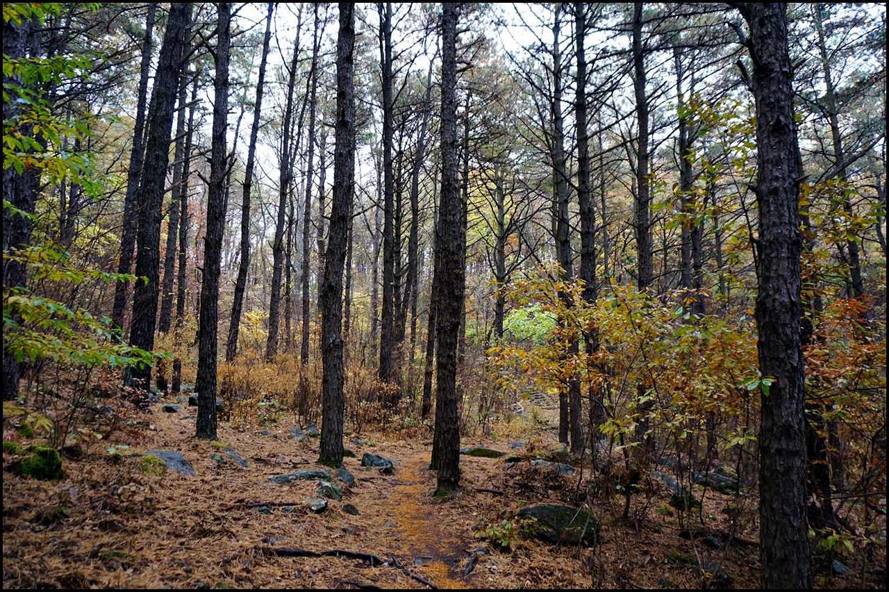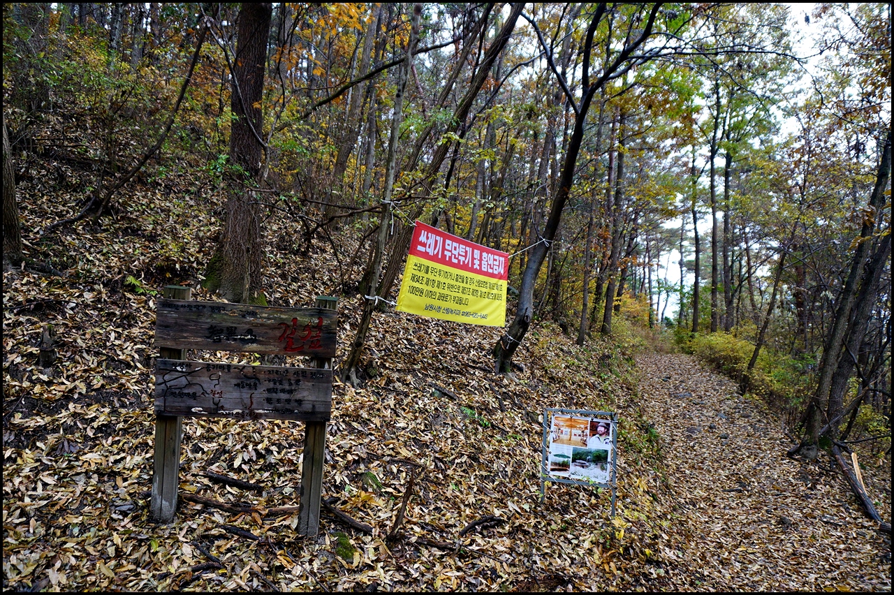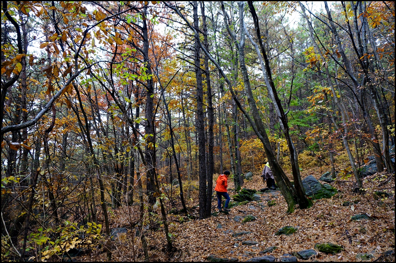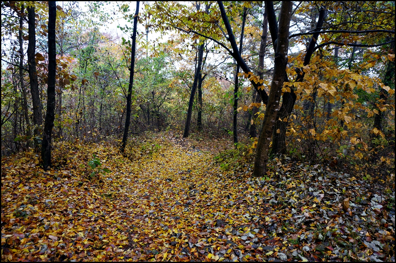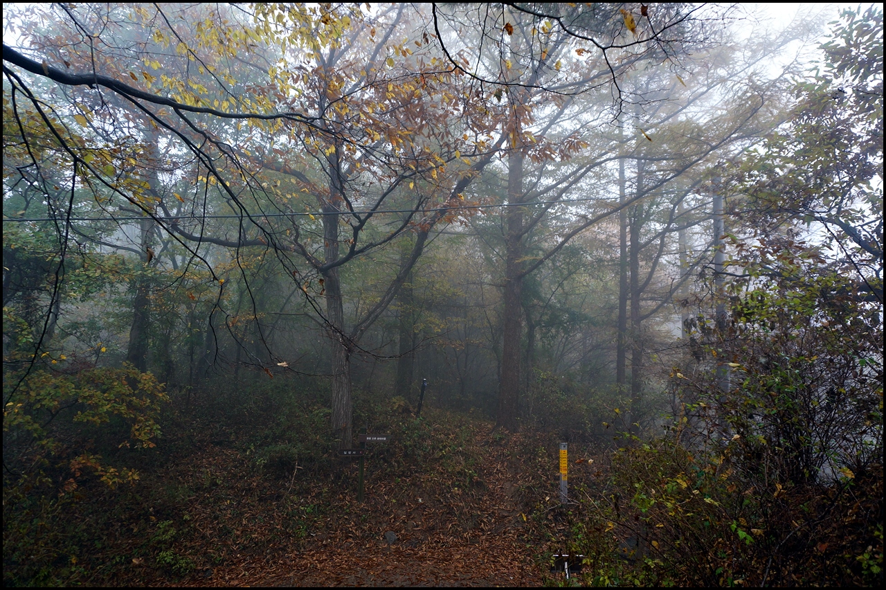 나무들 사이로 안개가 자욱하게 서려 있는 길을 걷고 단풍이 떨어져 꽃길이 펼쳐진 길을 걸었다.