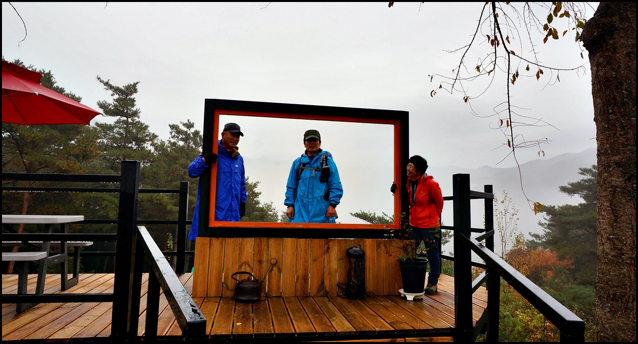 흐린 날씨 탓에 주능선의 상봉이 잠시 까무룩 숨겨져 있지만 포토존 뒤 배경이 그야말로 일품이다.