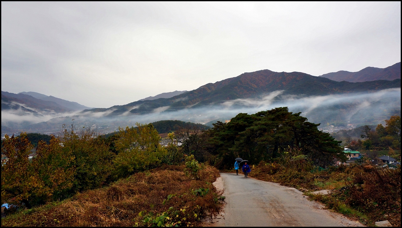마을회관에서 걷기 시작하여 천천히 오르는 동안 비는 더 이상 내릴 기세를 잃어버린 듯했다.