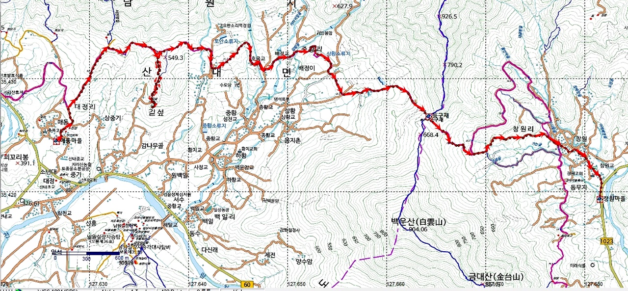전북 남원시 산내면 대정리 매동마을에서 08시 부터 걷기 시작하였다.
