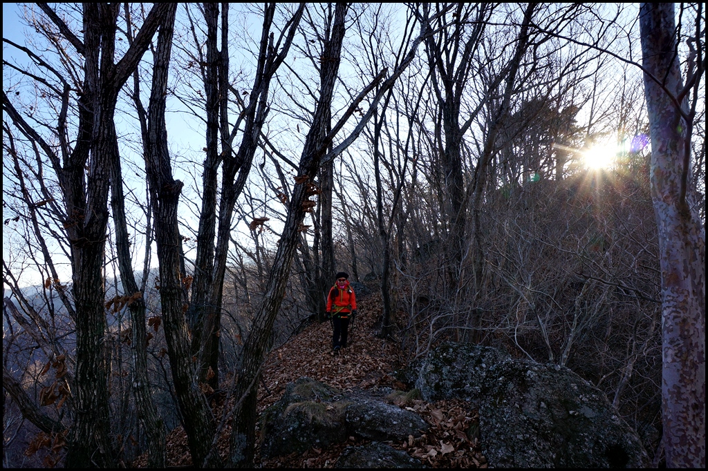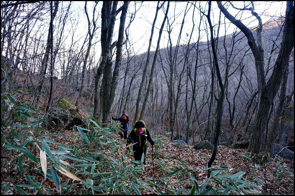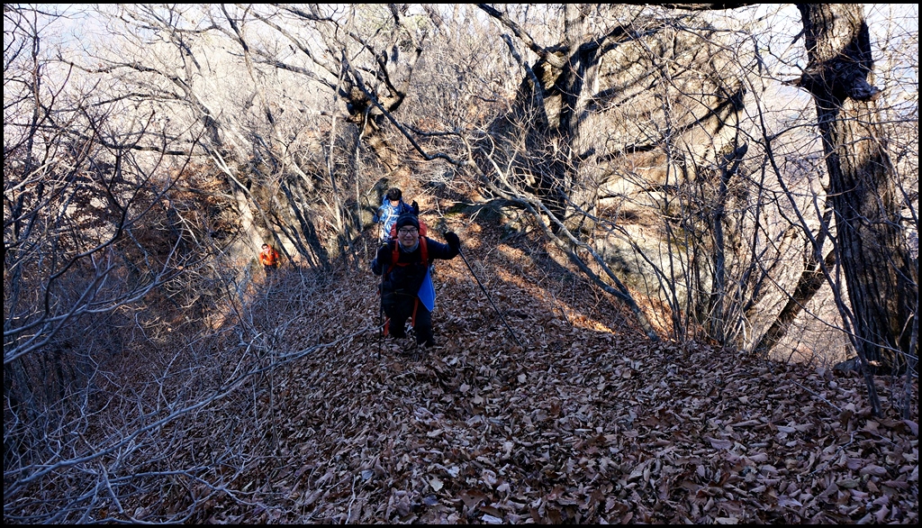 안락문을 지나 능선으로 오르는 길은 낙엽이 저렇게 무릎까지 쌓여있었다.