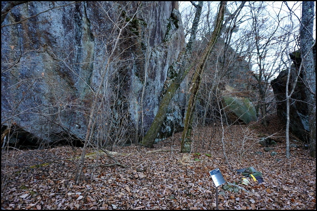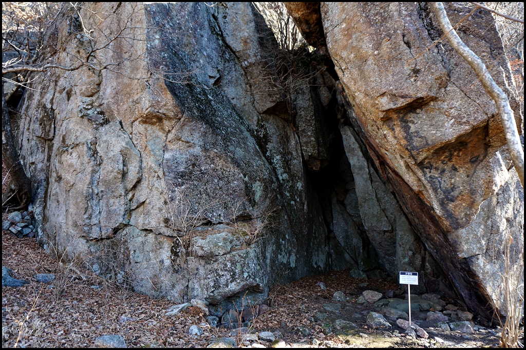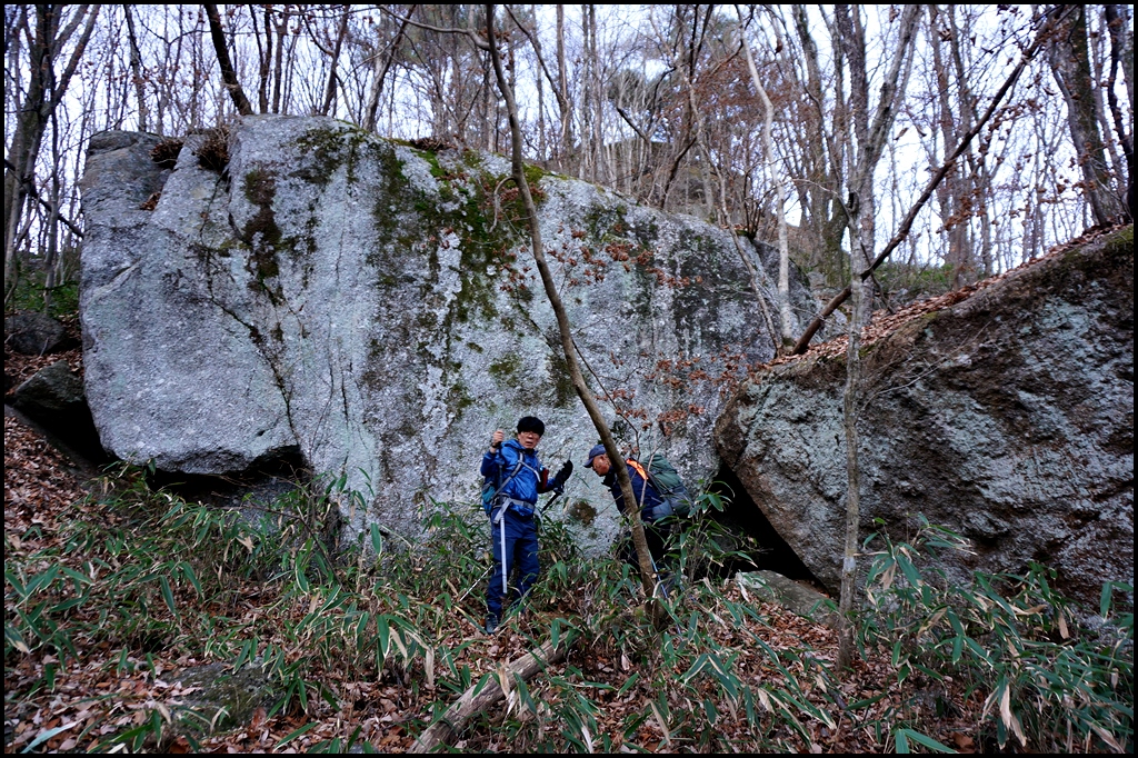 너들 지대를 따라 사면을 조심스럽게 들어가면 거대한 바위들이 보이고 곧 선열암 터가 나타났다.