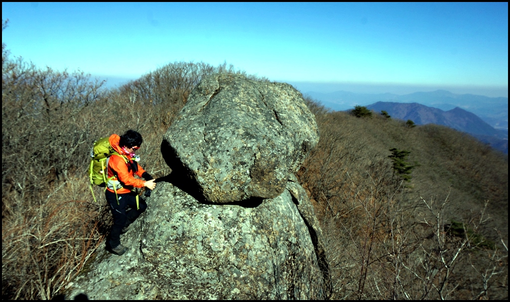 일명 오뚝이 바위에서 우리들도 되돌아 군계능선으로 향했다.