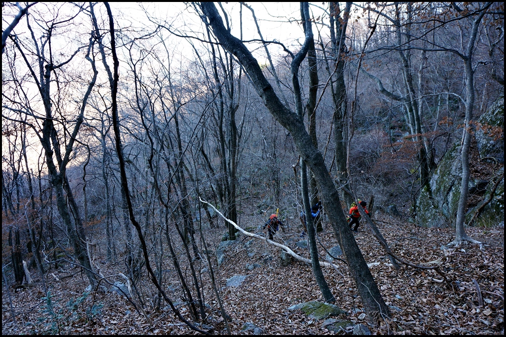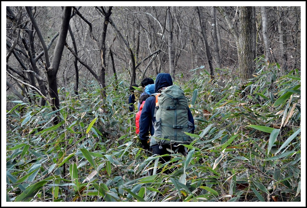 일행이 오기만 기다고 있을 때 저 밑에서 낙엽을 밟으며 올라오는 발자국 소리가 들렸다.