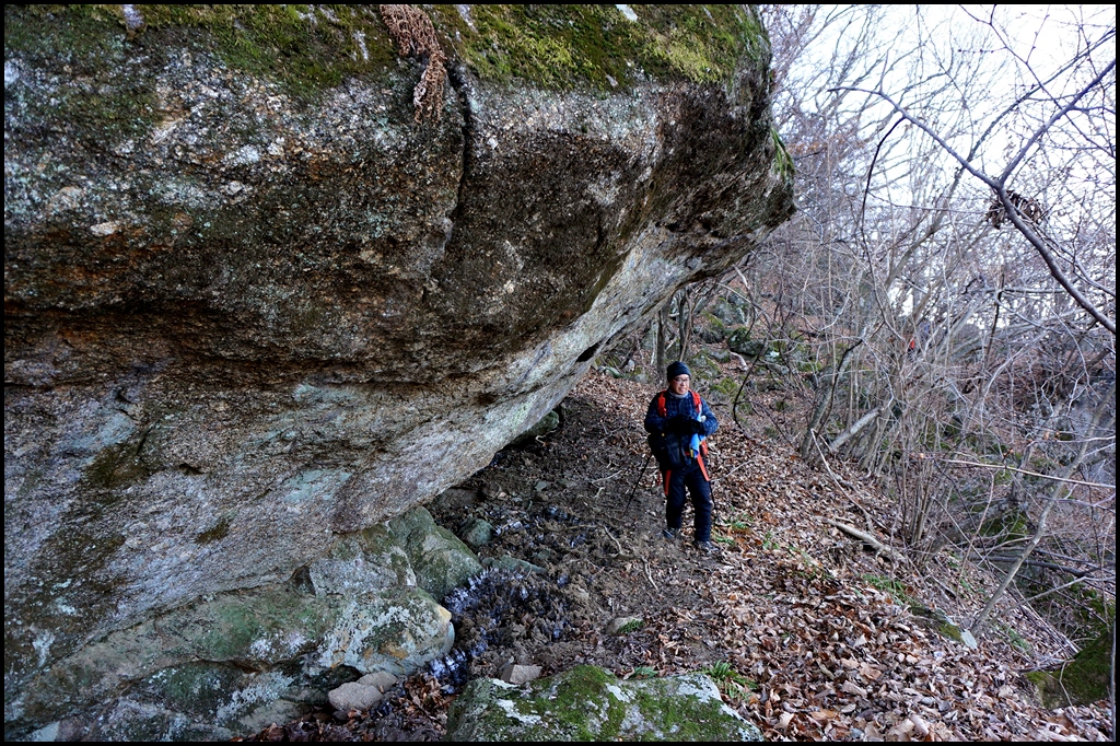 선열암 터 들어가는 길 바위 아래에는 고드름이 솟구쳐 얼어 있었다.