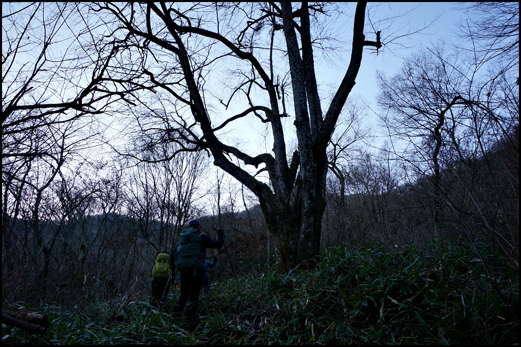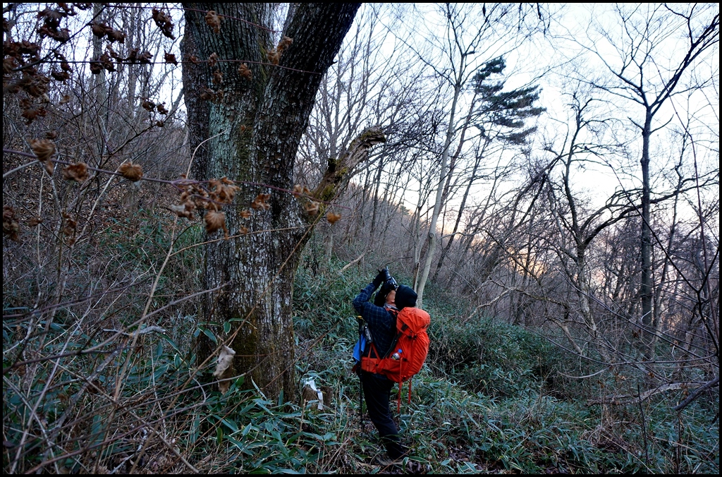 예전 공비 모형의 마네킹이 있었든 산죽 비트를 순식간에 지나고 지장사 터 포인트가 되는 오래된 돌배나무가 있는 곳에 도착했다.