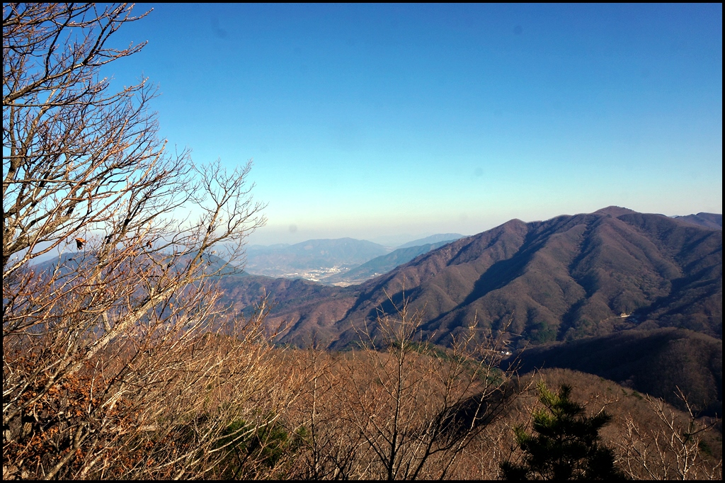 환희대 아래로 함양 독바위 부근에서 분기하여 내려오는 황새날등이 능선을 내리고 있었다.