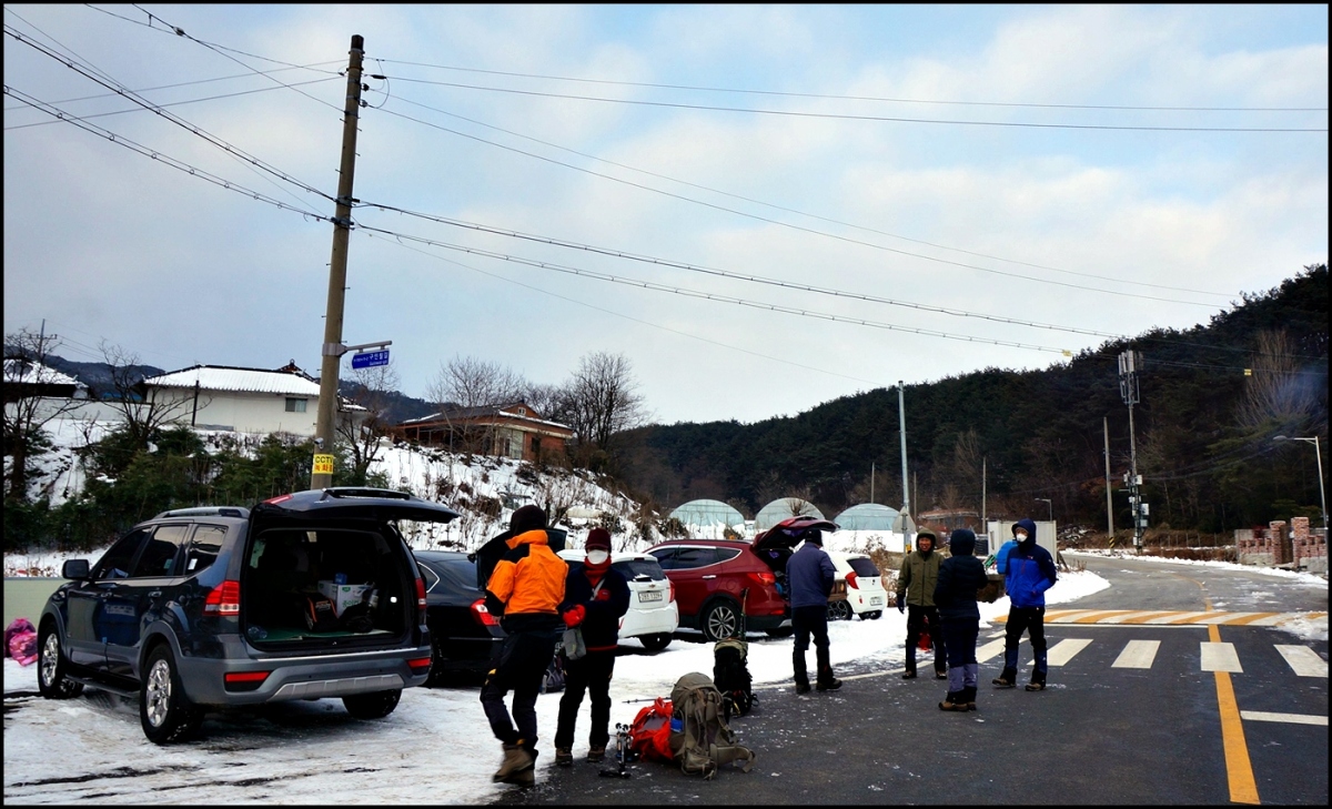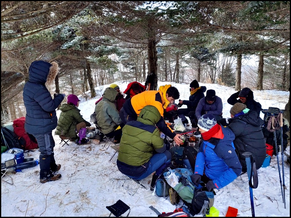 이들은 이 추운 날 뭐하러 이렇게 산을 오르려 할까....
