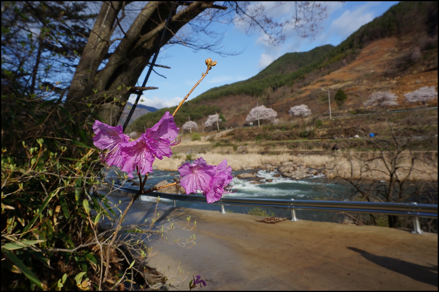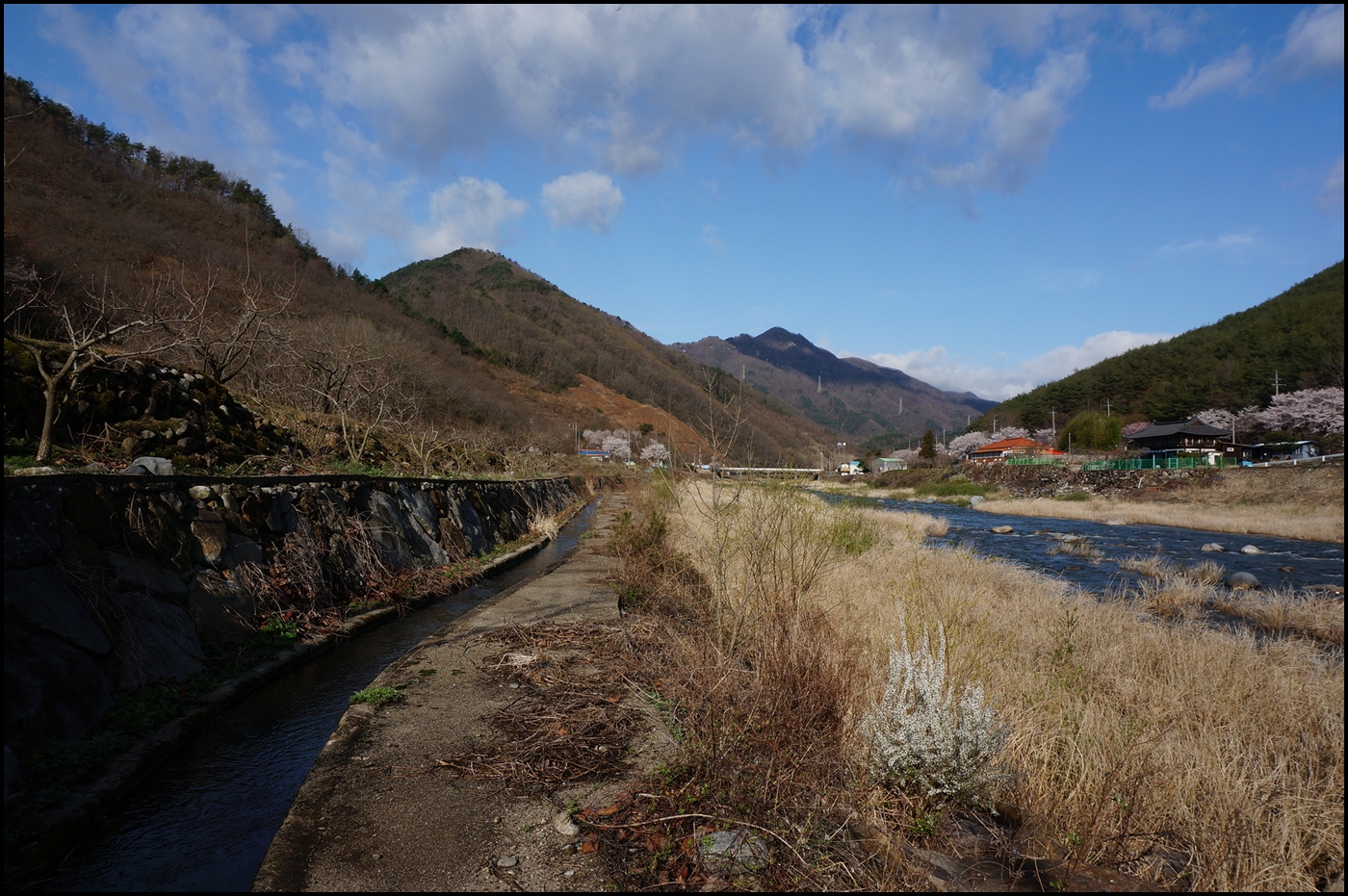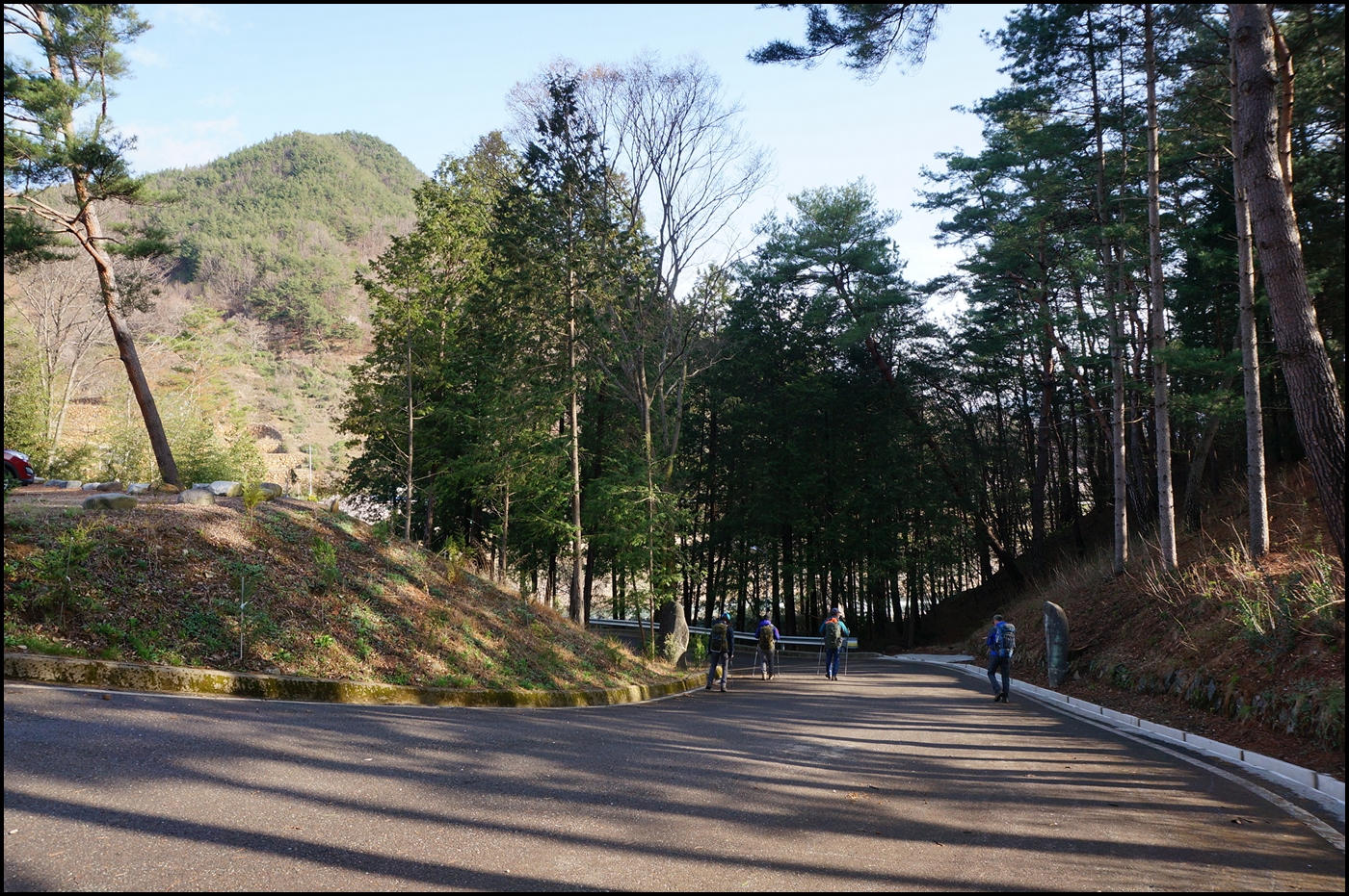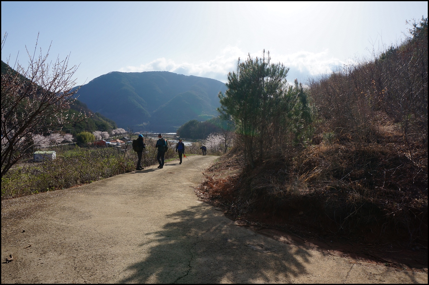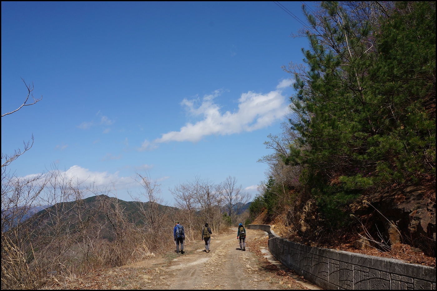 정각사 주차장에서 산행을 시작하여 반천 1교 부근 주산 능선 들머리로 가는 길은 하천을 따라 걸어야 한다.