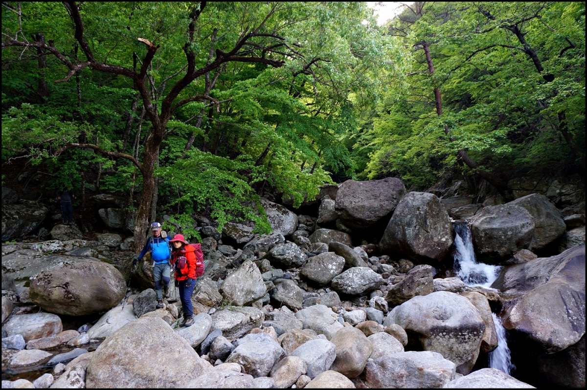 계곡을 건너고 등산로로 올라가는 짧고 쉬운 길을 찾아 쉽게 올라섰다.