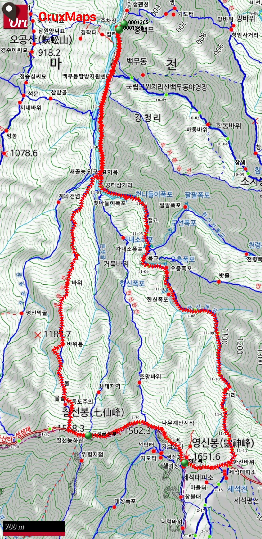 걸어간 길:백무동-한신계곡-세석대피소-영신봉-샛골능선(작은 곧은재골)-백무동