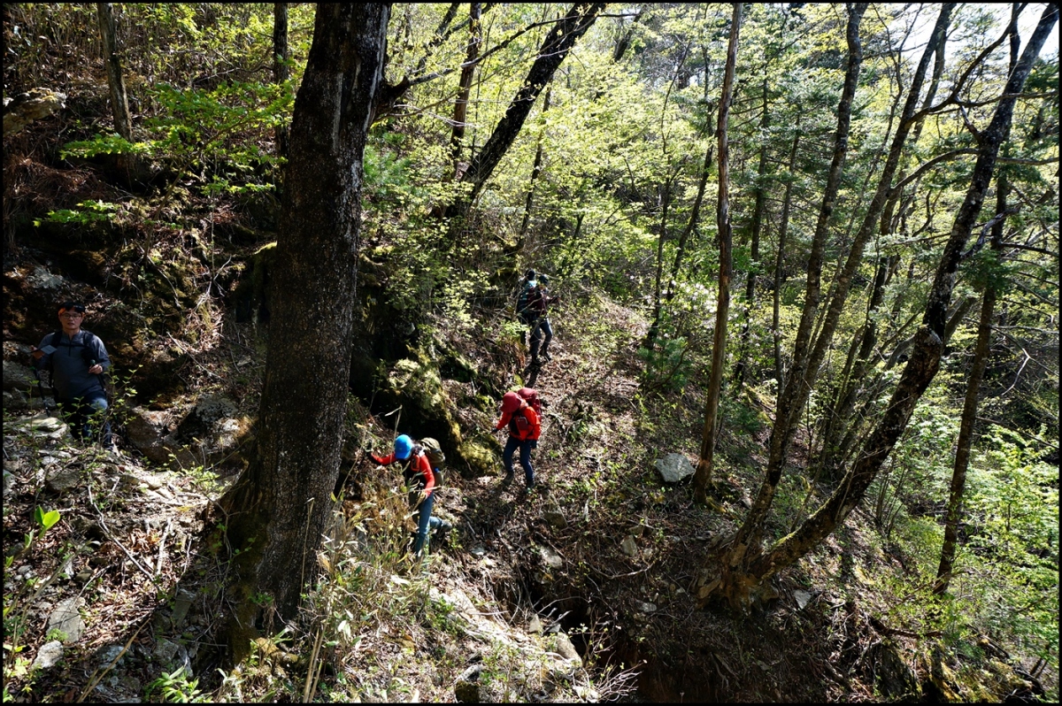 능선 끝머리에서는 지난번 능선처럼 계곡으로 급경사를 이룬 벼랑을 조심히 내려왔다.