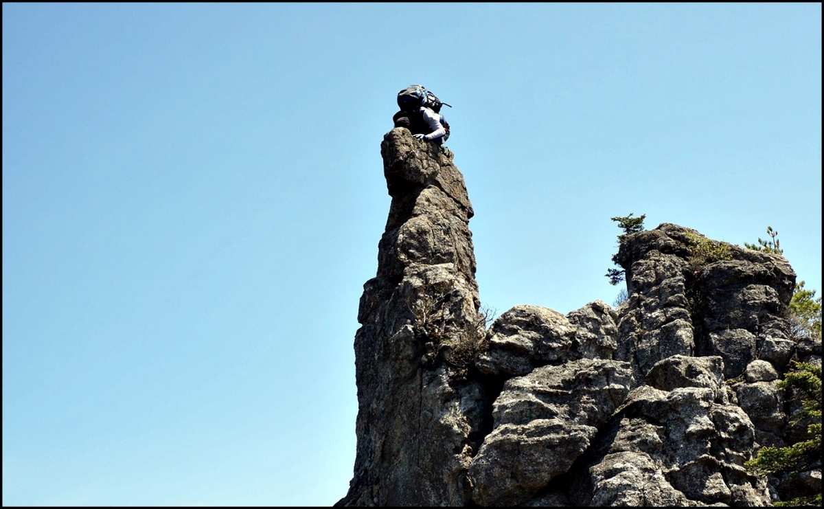 바람이 조금 불어 위태로워 보였지만 형님은 배낭까지 맨체 올랐다.
