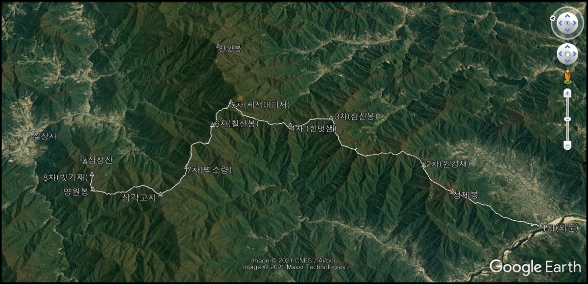 걸어간 길:삼정-작전도로-벽소령-부자암-삼각고지-영원령-영원봉-빗기재-영원사