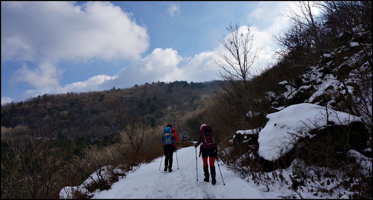 눈이 제법 쌓였으나 미끄럽지 않아 걷기에 불편함이 없었다.