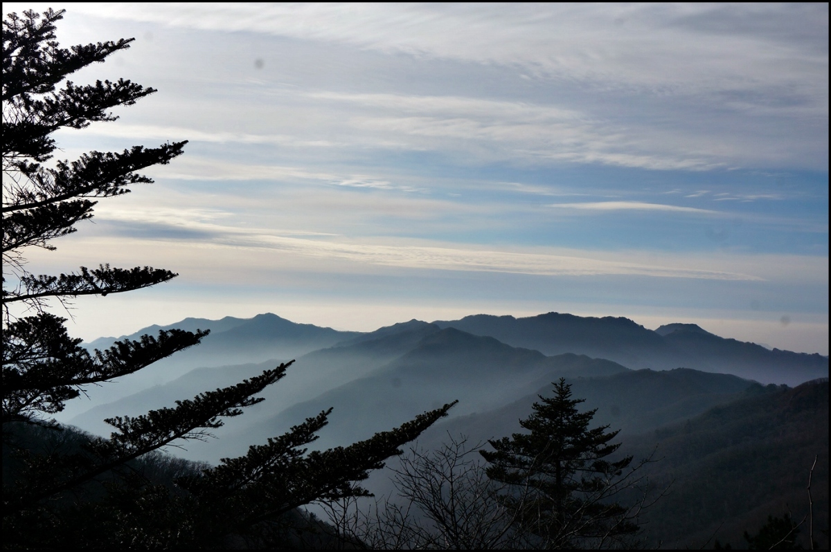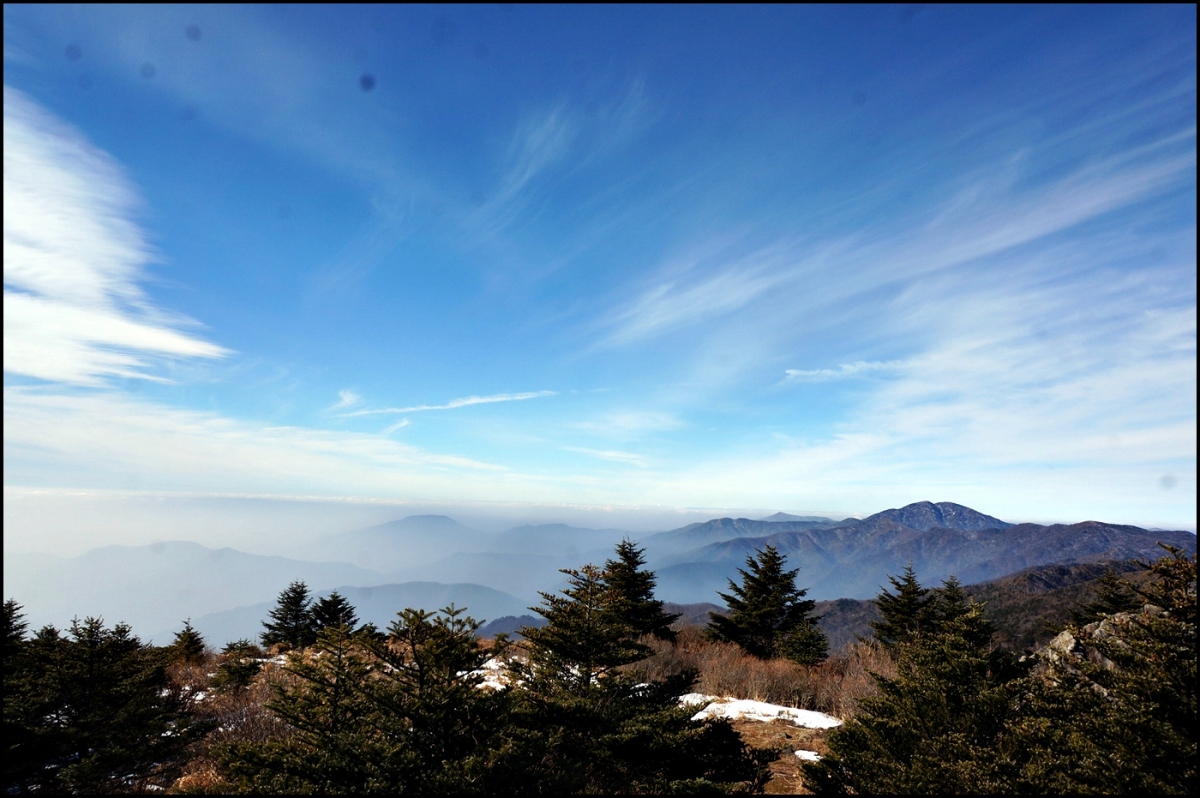 남부 능선이 길게 뻗어가는 전망 좋은 곳에서 점심상을 펼쳤다.