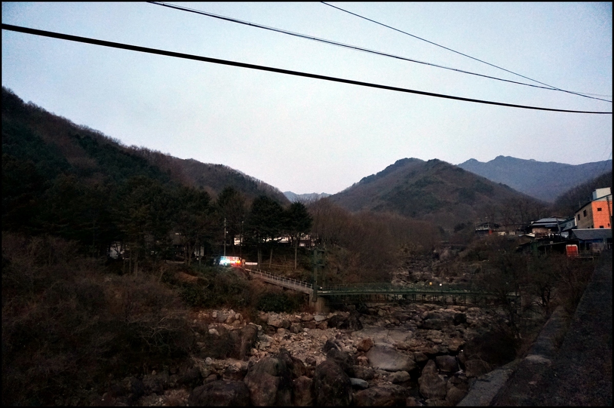 갓걸이골로 하산하는 동안 해가 빠르게 넘어갔다. 계곡은 2.5km에 불과하였지만 해가 넘어가고 어둠이 내린
