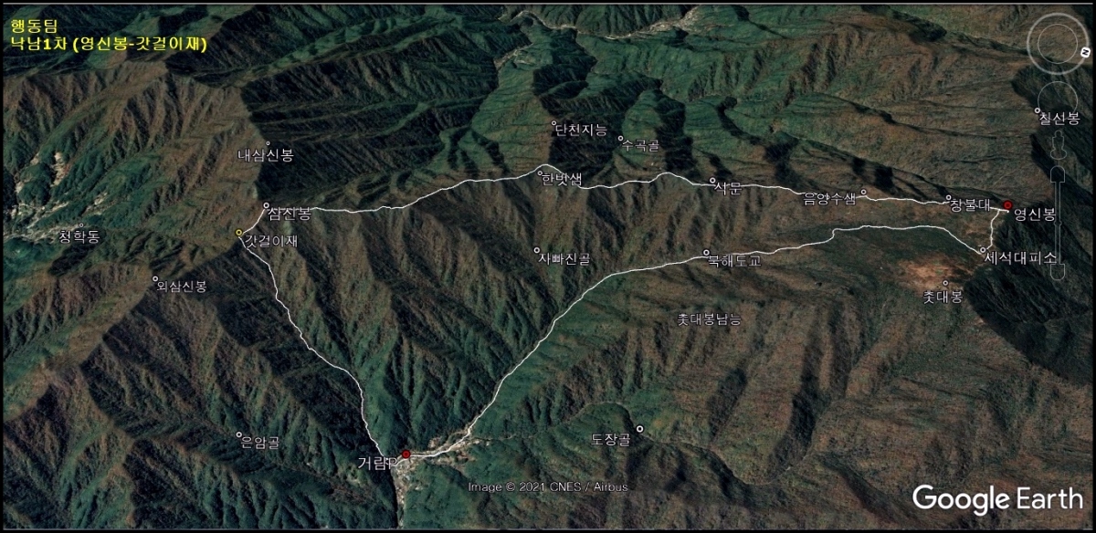 지난해 9월 창불대 사면길을 걸어 본 적이 있어 저 아래의 여러 곳을 눈짐작으로 가늠하여 보았다.
