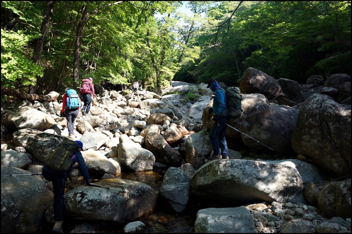 마야 계곡 본류까지 250여 m의 길지 않은 길은 너들길로 뚜렷한 흔적은 없었지만 희미하나마 길은 보였다.