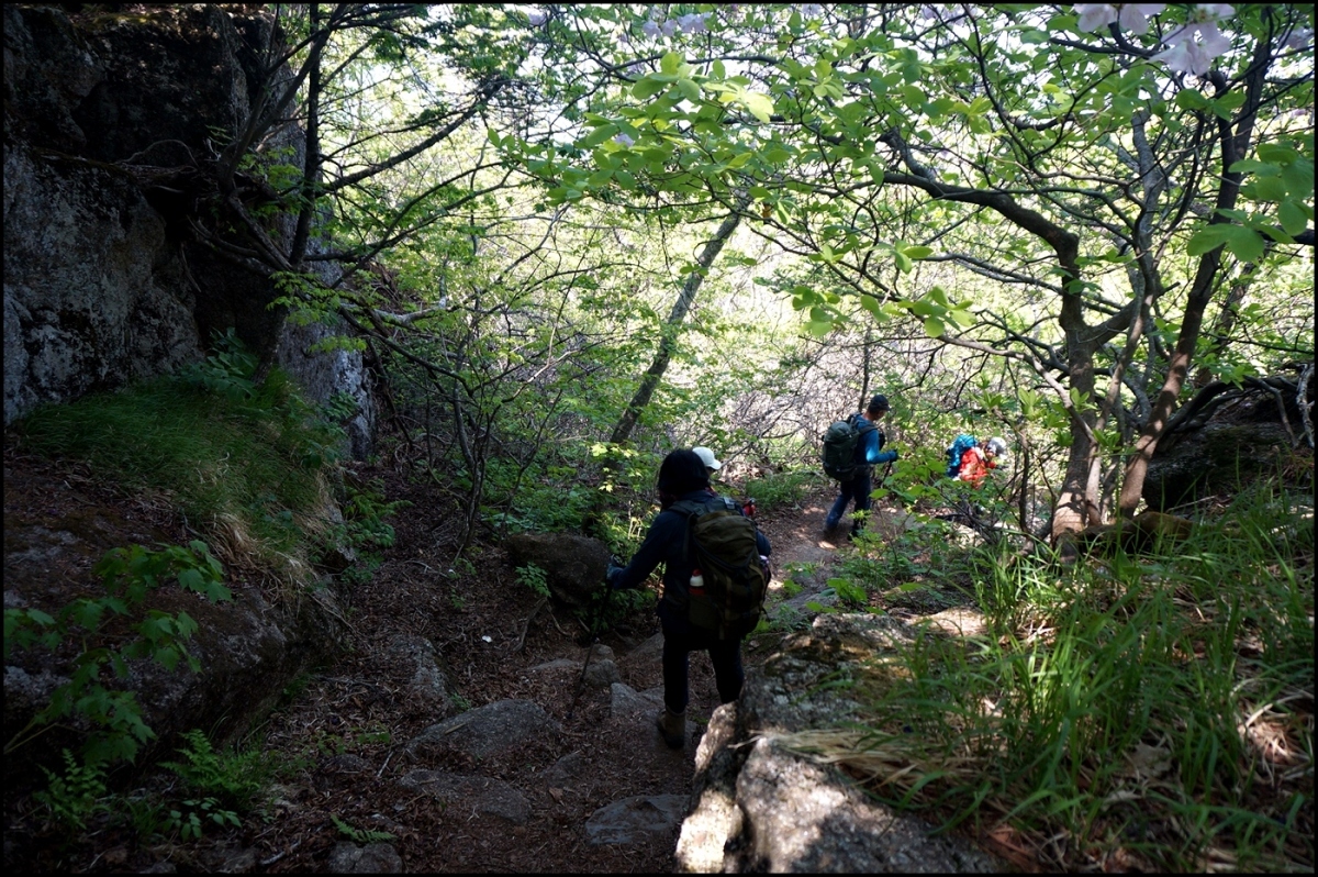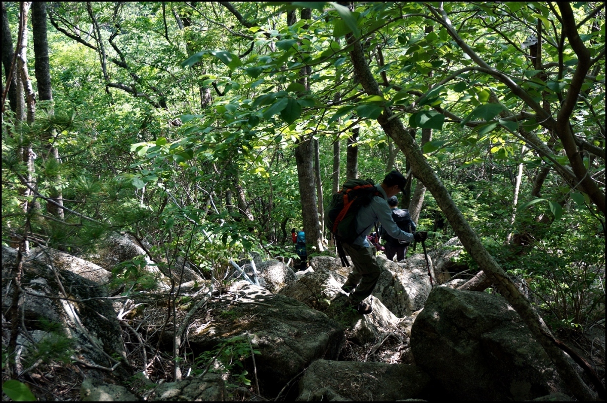 대부분의 일행은 지난번에 올랐든 길을 따라 암벽을 우회했다.