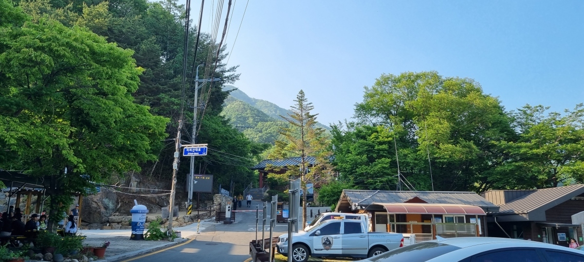 두 대의 차로 같이 간 일행의 차 한 대는 통과 하여 올라갔지만 우리 차는 도로변에 주차해야 했다.