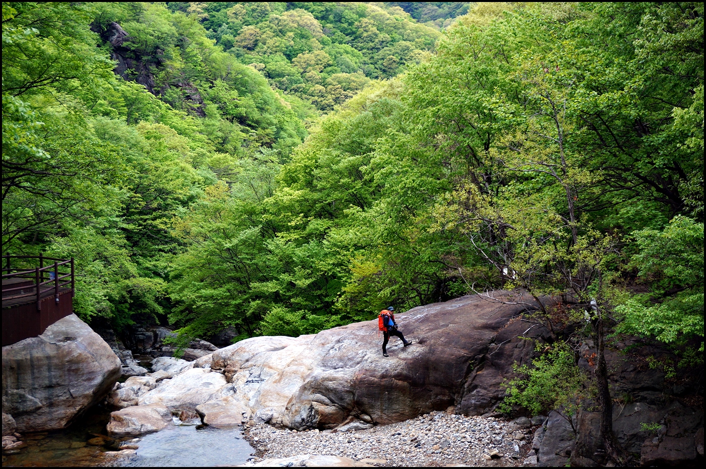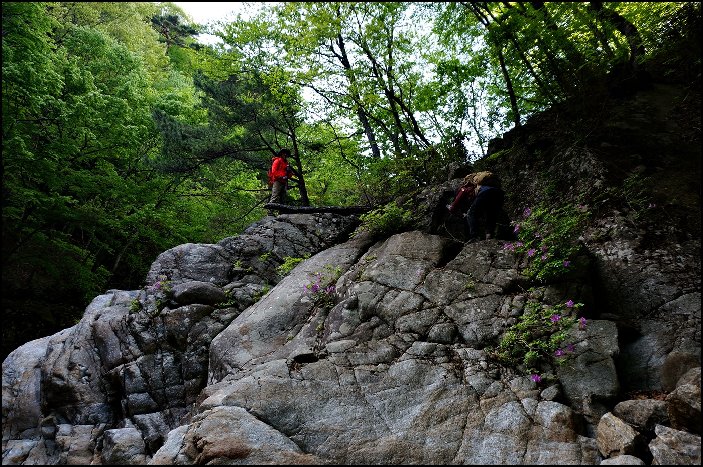 생각보다 길은 빠르게 고도를 낮추었고, 한 두 번의 쉼으로 계곡에 닿았다.