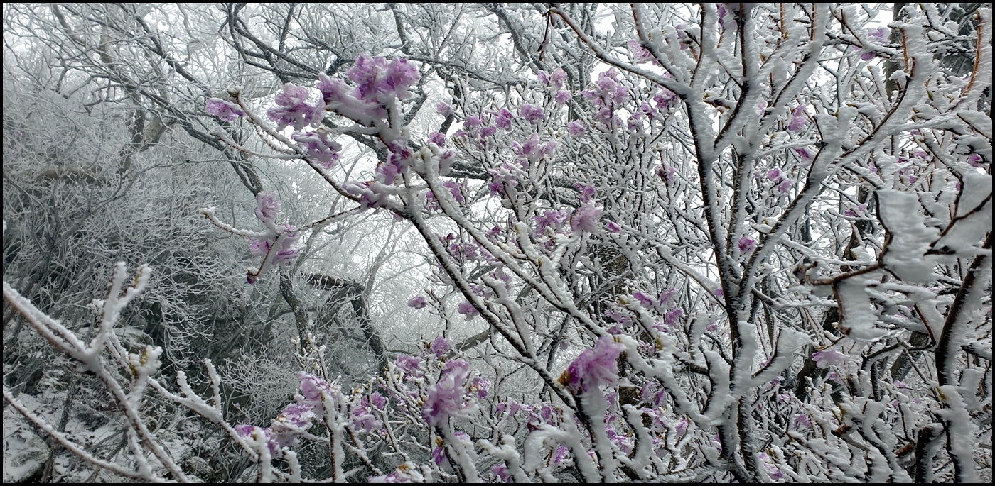 봄과 겨울의 충돌이 빚어낸 진달래와 눈, 오월의 설국은 신비로웠다.