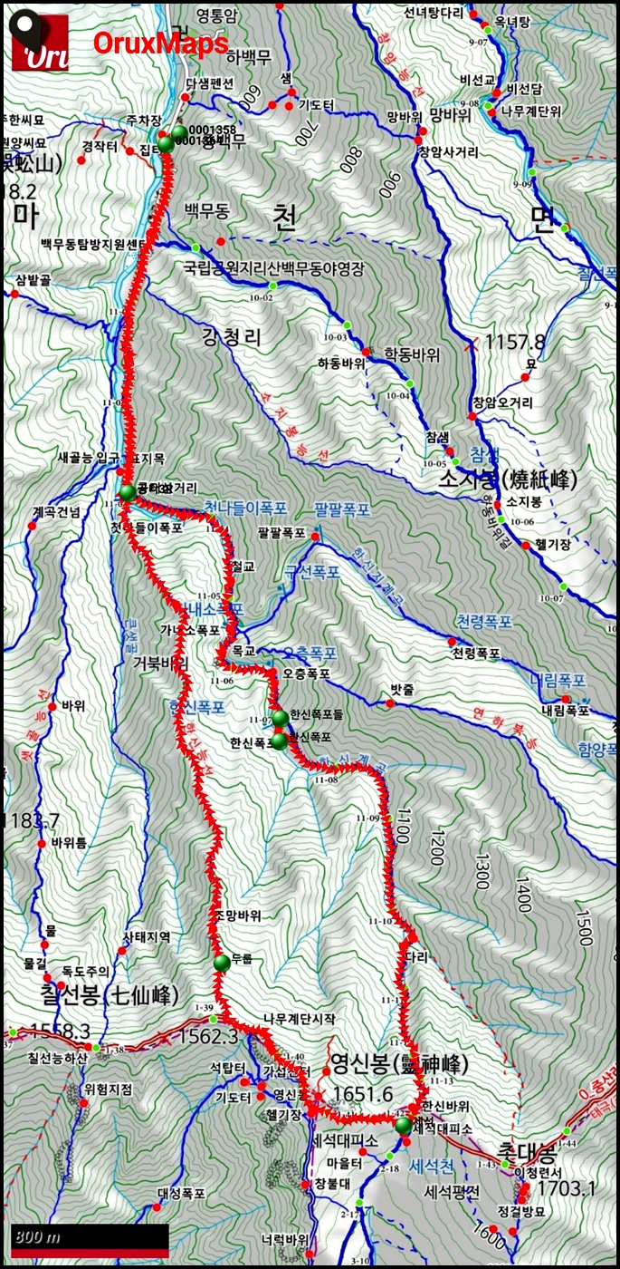 산행시간:07시39분~17시 25분 (9시간 45분) 12.7km