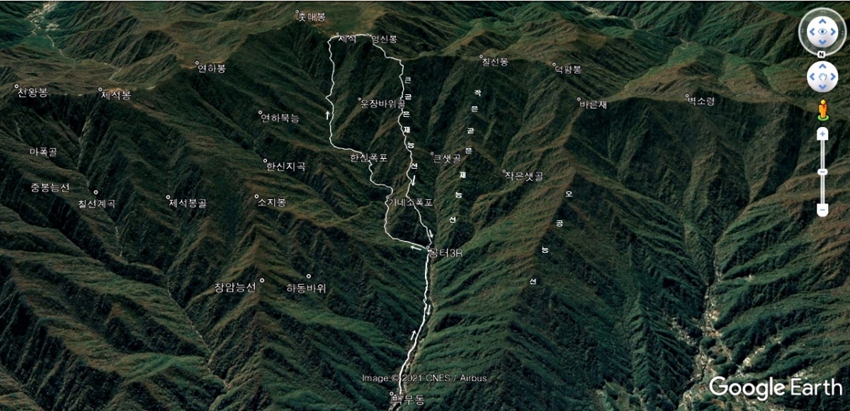 산행 후 인터넷으로 찾아본 이 능선은 <곧은재 능선, 바른재 능선, 한신 능선>으로 산꾼들마다 제각각으로 불려지고 있었다.