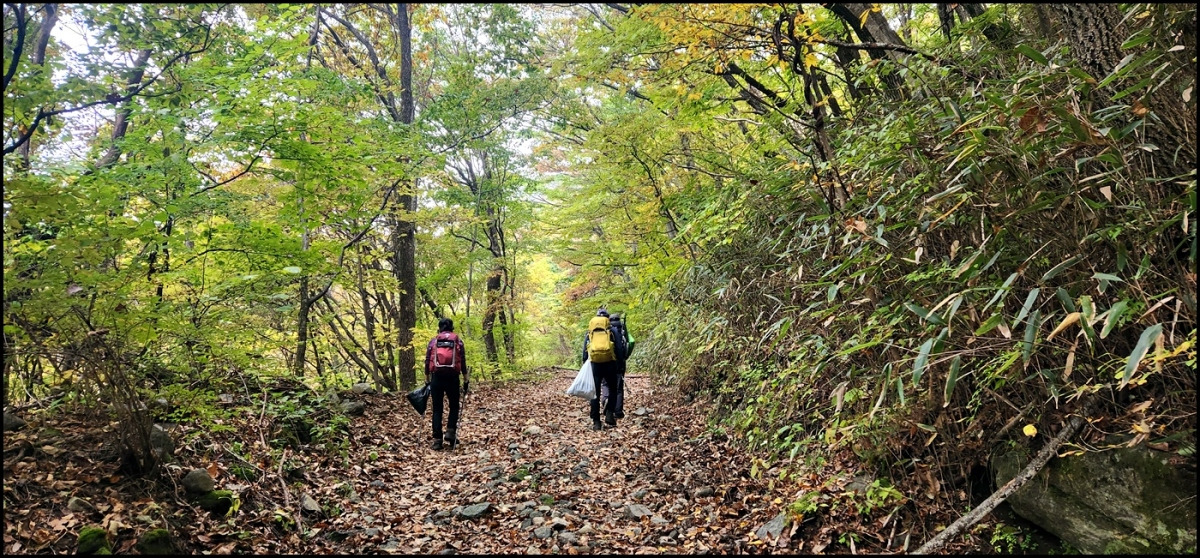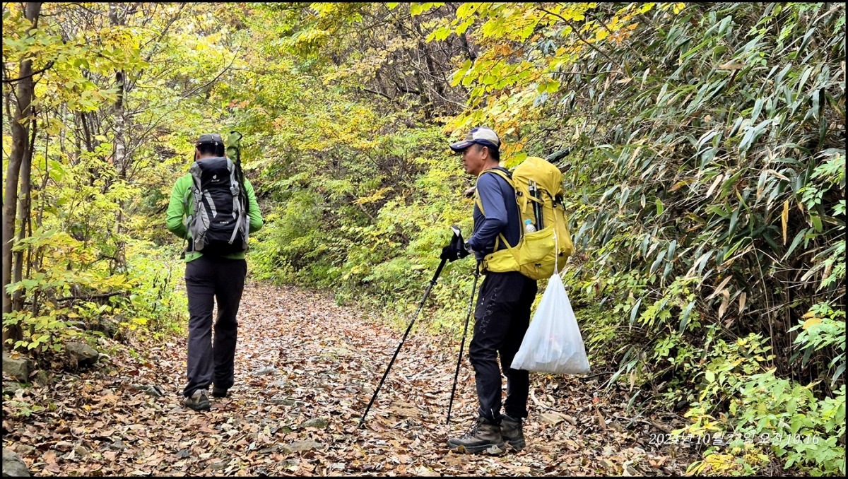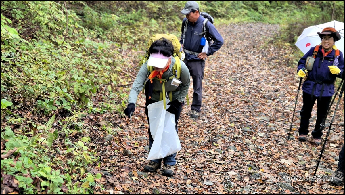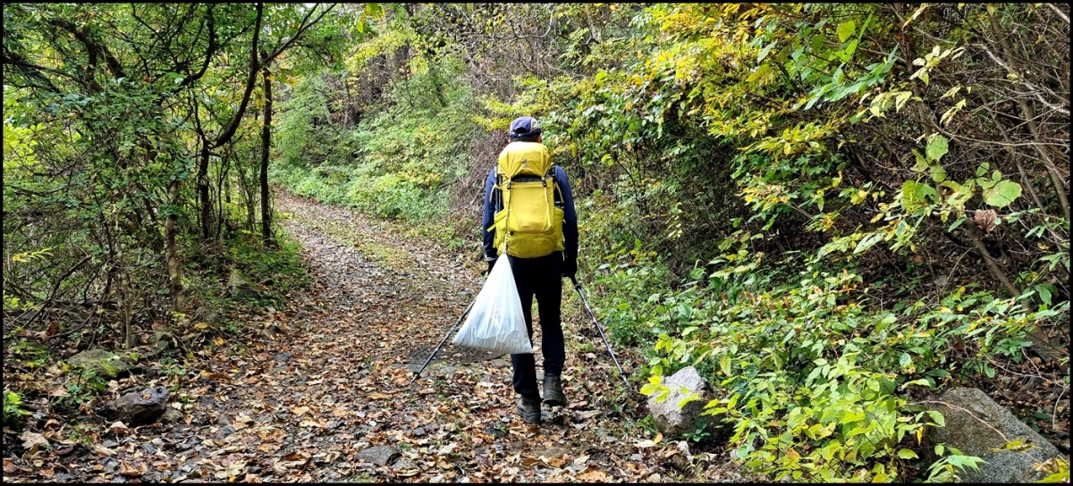 모조리, 가차 없이, 다 주워버리겠다는 의지로 바람직한 청소 산행의 모범을 보여줍니다.
